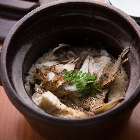 当店にご来店される方は必ずご注文される『鯛めし』。お米マイスターが厳選したお米と、和歌山直送の天然真鯛を使用したこだわりの1品。是非一度お召し上がりください!